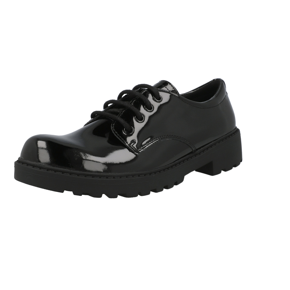 Step into comfort and style with the Geox Casey Black School Shoes. Perfect for school and formal events, these breathable shoes feature a chic patent-leather look, harmonizing effortlessly with any uniform or special attire. Designed with an antibacterial leather footbed for all-day freshness.