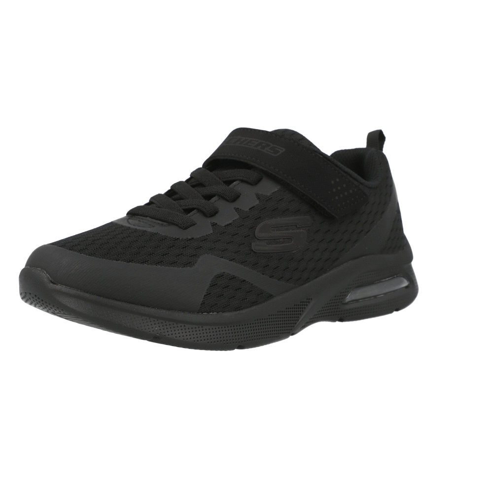 Step into all-day comfort with the Skechers Microspec Max in classic black. Perfect for kids on the move, these slip-on shoes feature a sporty design with a breathable mesh and synthetic upper, and plush midsole cushioning for unbeatable comfort. Easy elastic laces and Velcro strap make them a breeze to wear.