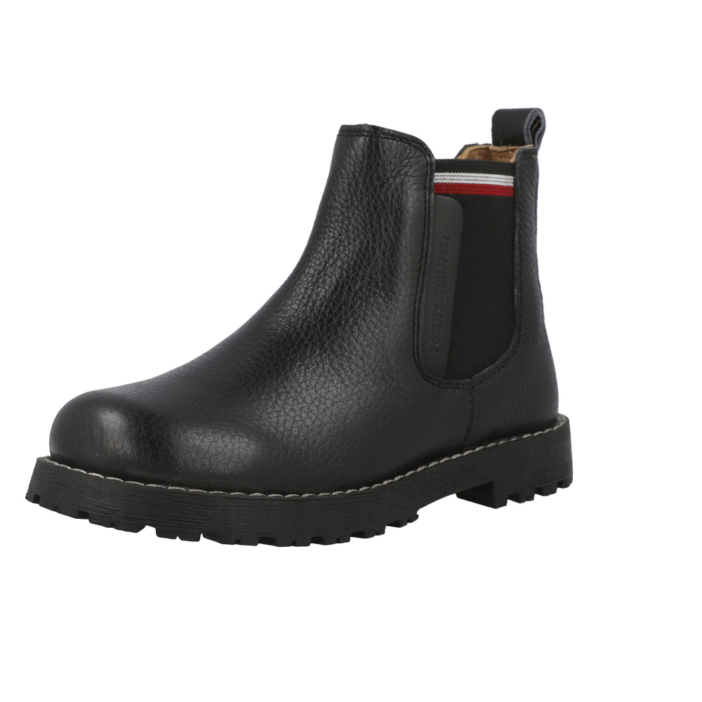 Step into timeless style with Tommy Hilfiger Black Chelsea Boots. Perfectly crafted with solid heels and round toes, they offer lightweight comfort and understated elegance for any occasion. The iconic Tommy Hilfiger flag adds a touch of sophistication.