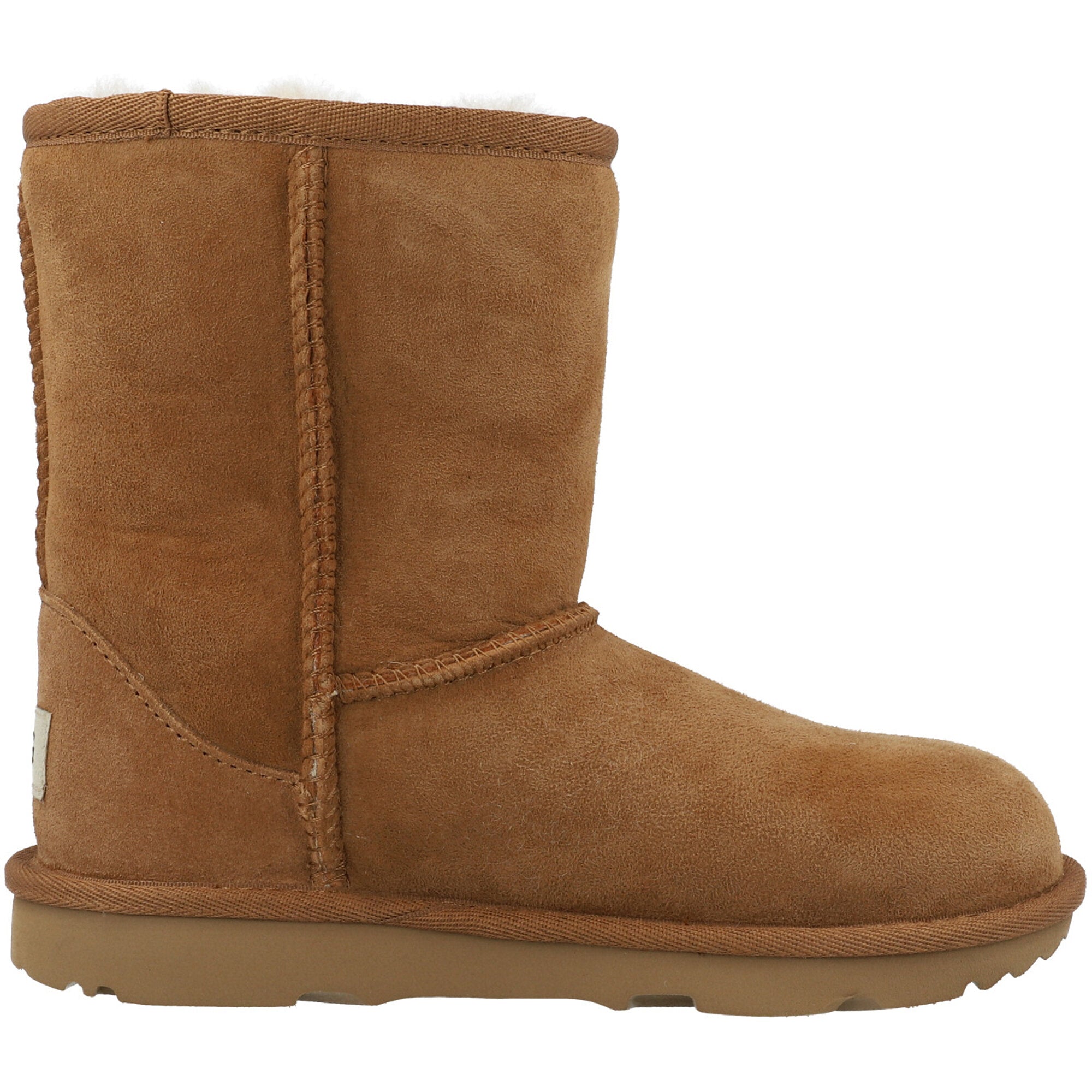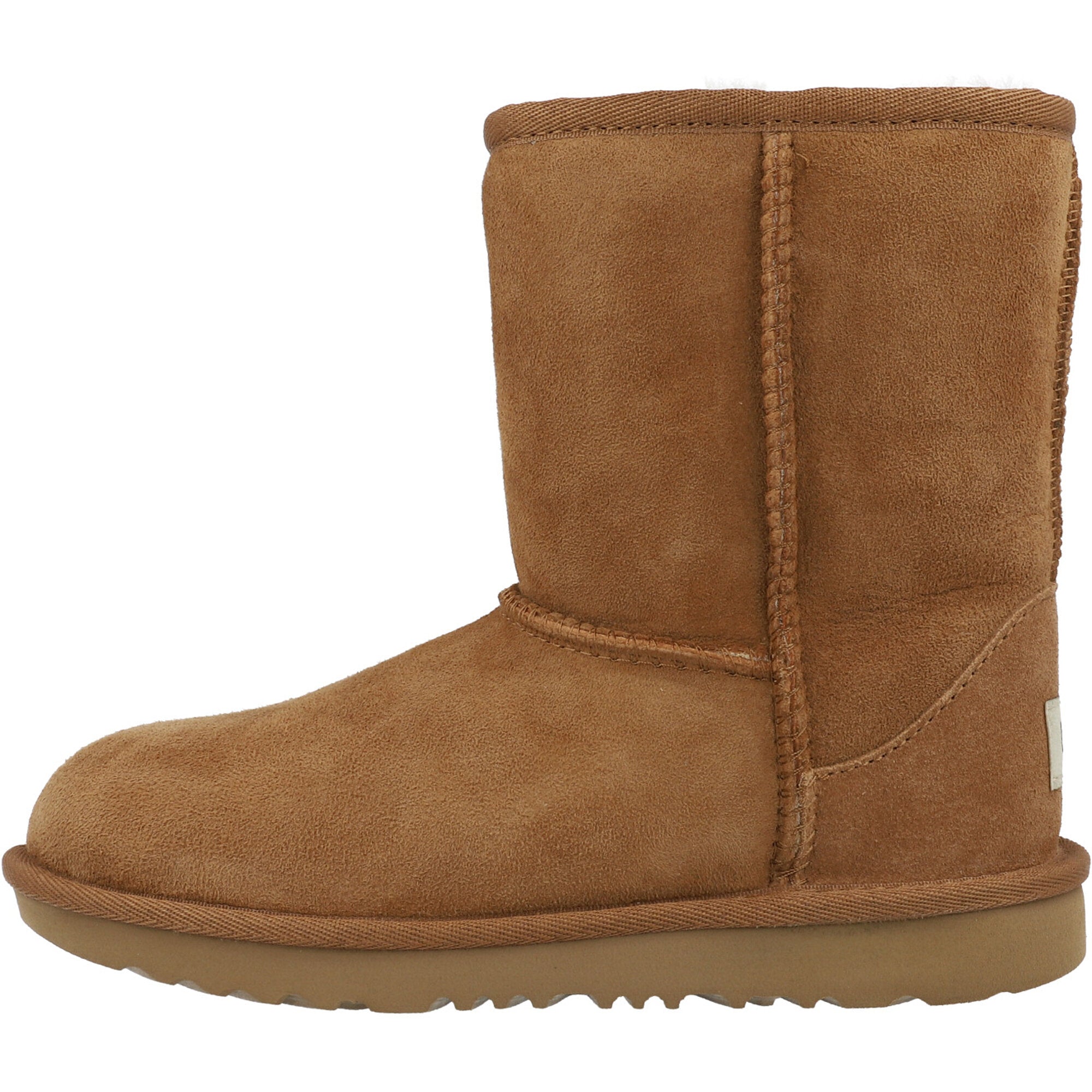 Let your little one explore in comfort with the UGG Classic II Chestnut Boots. Crafted from cozy sheepskin and built for adventure, these boots feature a water and stain-resistant design, plush cushioning, and a lightweight sole for all-day play. Perfect for every puddle jump and cartwheel!
