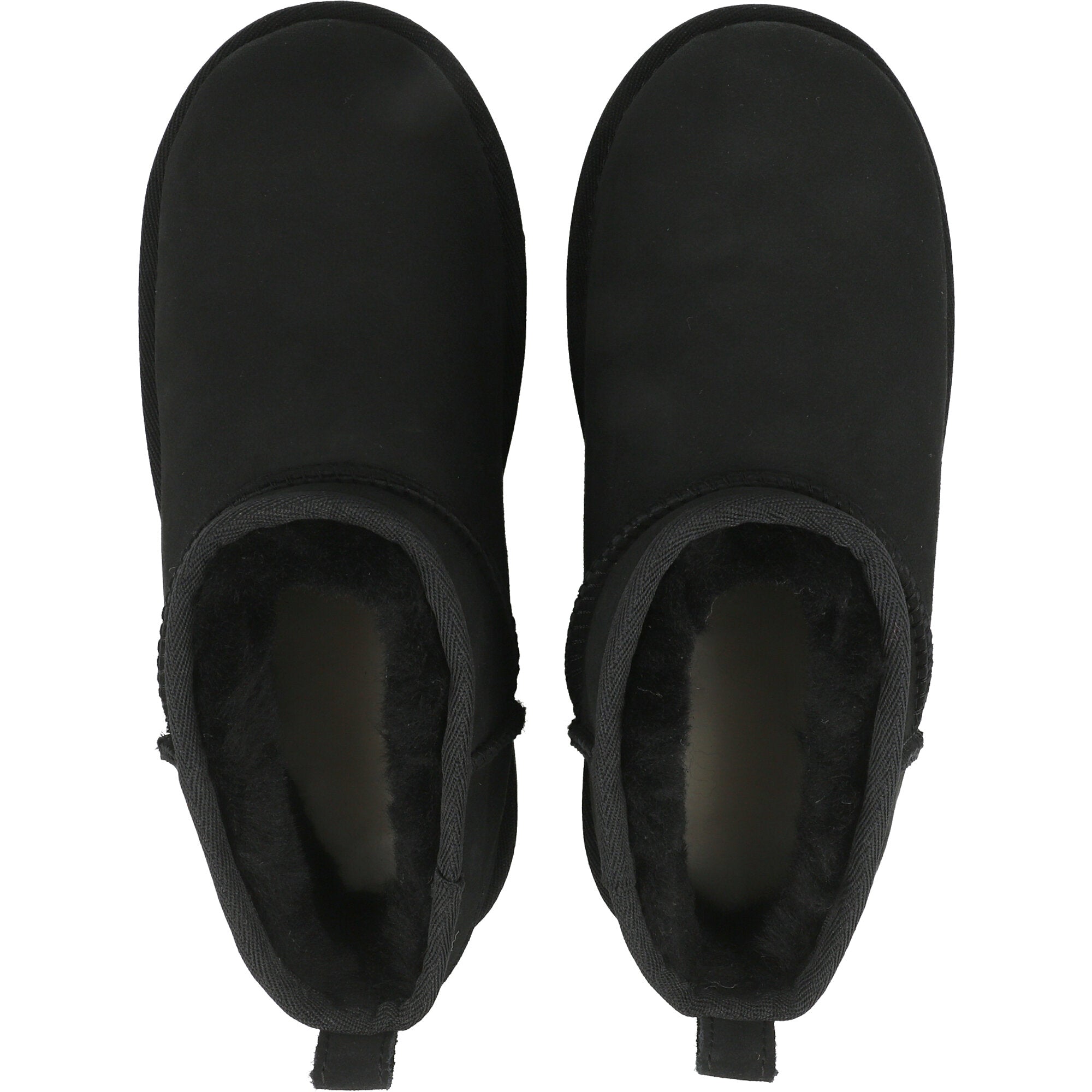 Step out in style with the UGG Classic Ultra Mini Black Boots. These versatile boots bring the iconic comfort of UGG with a modern twist, featuring a cozy sheepskin lining and plush insole. Perfect for all-day wear, they're treated to repel water and made for easy on and off, making them your go-to for effortless chic.